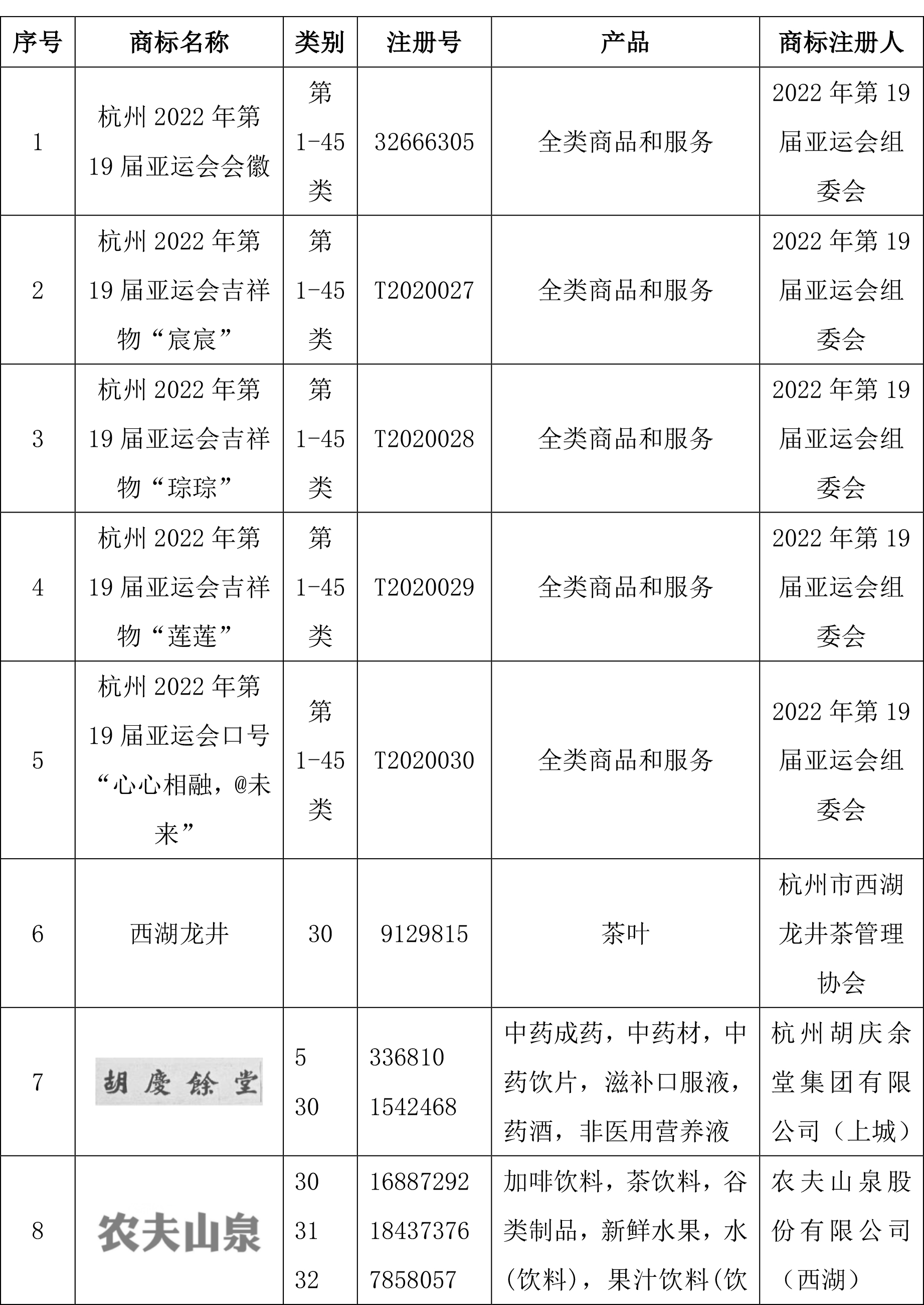 首批納入保護名錄的重點商標具有濃郁的杭州特色: